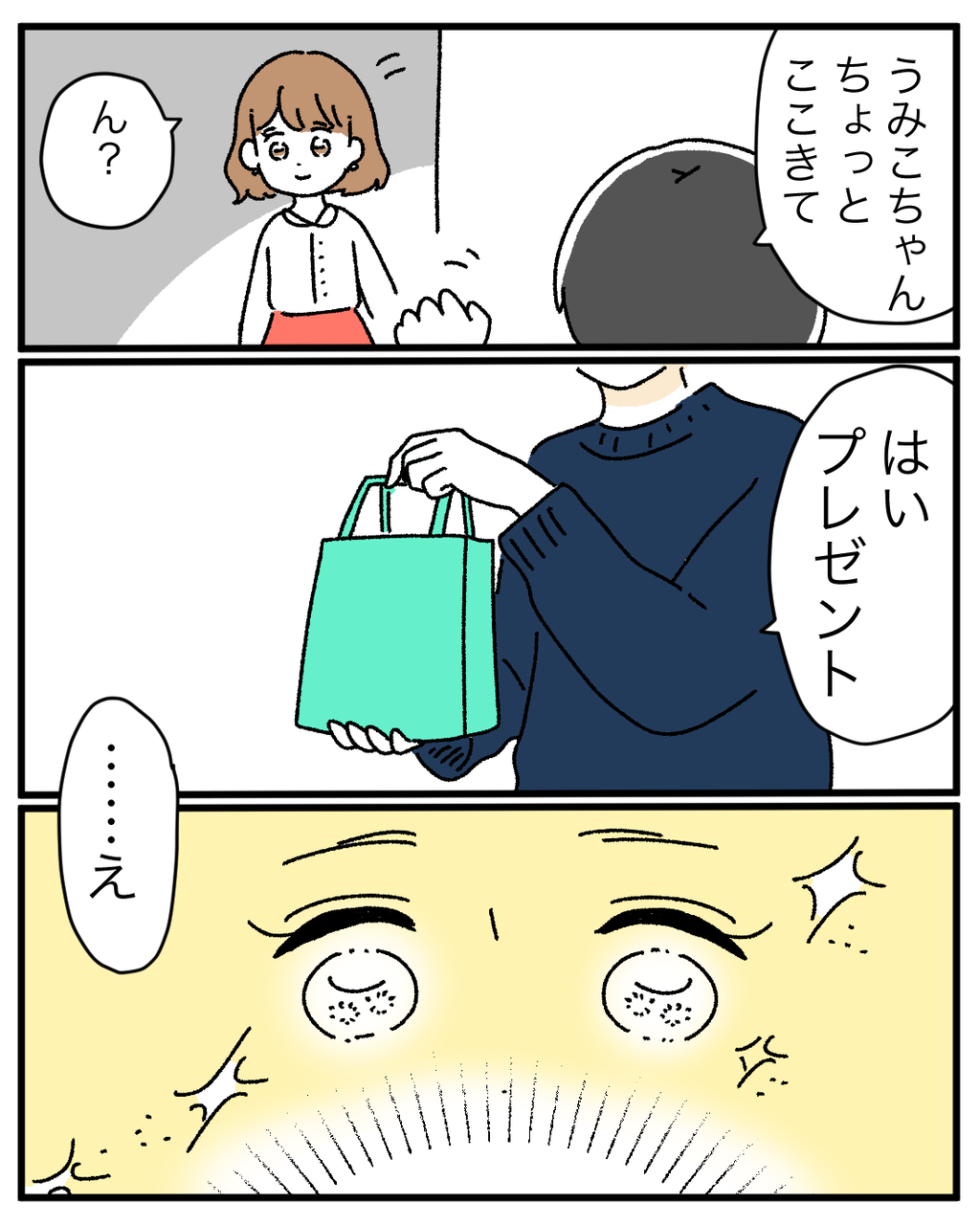つきあって8ヶ月で結婚しました62 2022年12月03日 結婚して10年目ですが最初で最後のサプライズでした。もうサプライズは二度としないそうです。理由は、相手の欲しいもの聞いてあげた方がいいからだそうです。(間違いない)なので結婚してからは欲しいものは自己申告制になりました。つづき 「つきあって8ヶ月で結婚しました」カテゴリの最新記事 < 前の記事次の記事 > コメント コメント一覧 (3) 1. ととと 2022年12月03日 20:33 そうなんですよね。 ユニクロって良いんですけど、これがクリプレか〜となると複雑。 そして素敵なサプライズでチャラ!!!w 0 うみこ がしました 2. うみこ 2022年12月03日 20:52 >>1 初めてのクリスマスだし、勝手に期待値高くなってました😇いかんいかん! 0 うみこ がしました 3. すすこ 2022年12月05日 09:23 よかったーー! 昨日の展開でちょっとドキドキしていたので ホッとしました^ ^ 0 うみこ がしました コメントフォーム 名前 コメント 記事の評価 リセット リセット 顔 星 情報を記憶 コメントを投稿する