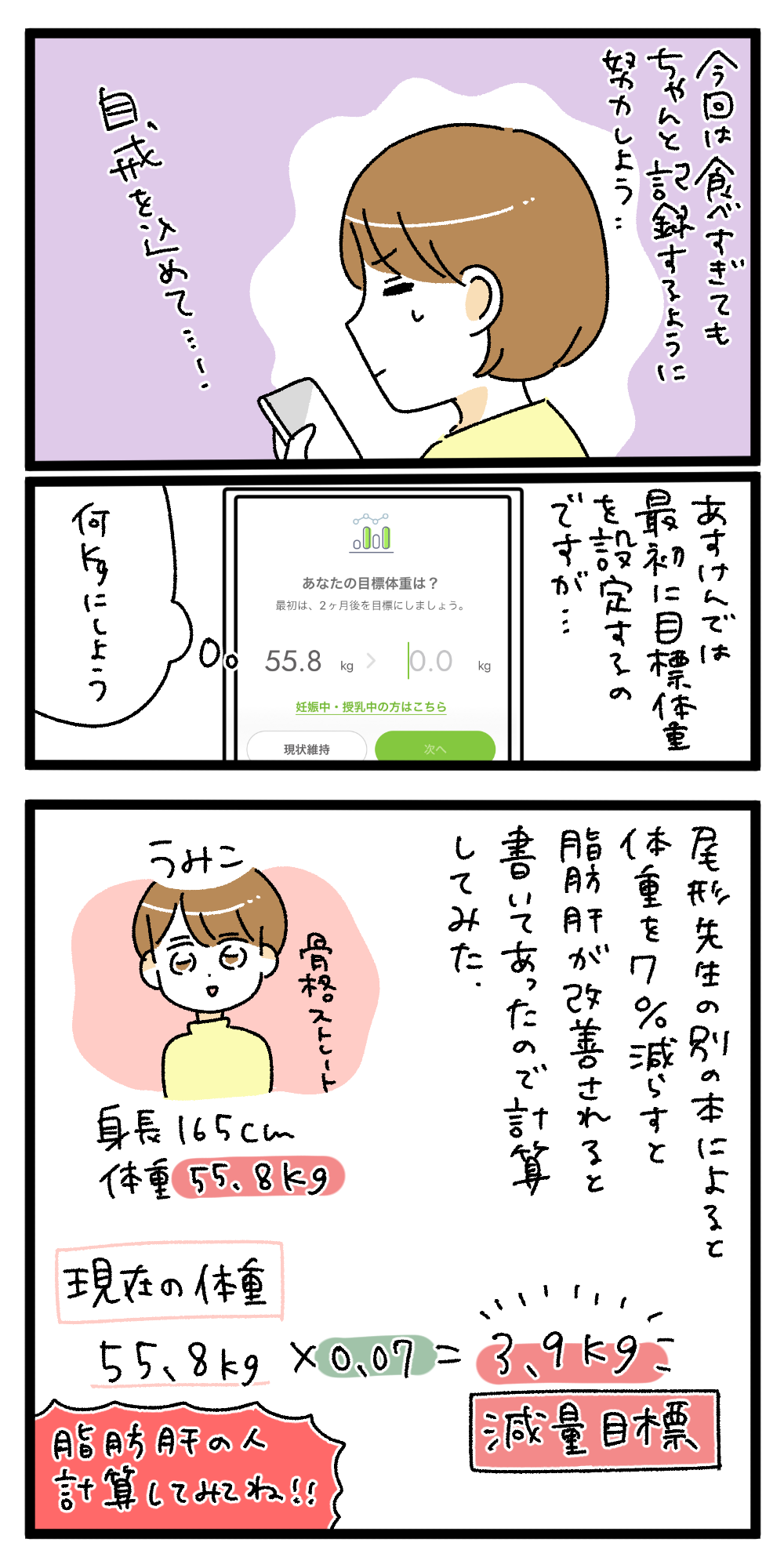 脂肪肝になってしまったので5kg痩せることにしました5 2023年11月17日 1話はこちら 前回はこちら さあどうだっ!!!! 「ダイエット漫画」カテゴリの最新記事 < 前の記事次の記事 > コメント コメント一覧 (1) 1. 私も脂肪肝の人 2023年11月19日 03:12 私も医者に脂肪肝といわれるも 何もせずというか…どこから手をつけた方がいいのかわからずでしたが、うみこさんが読まれた本のメモを真似しようと思います! 計算したら、私の場合、約6kgでしたが7kg目指します(ง •̀_•́)ง ご飯は今後自分で彼氏の分も作って頑張ります💪 0 うみこ がしました コメントフォーム 名前 コメント 記事の評価 リセット リセット 顔 星 情報を記憶 コメントを投稿する