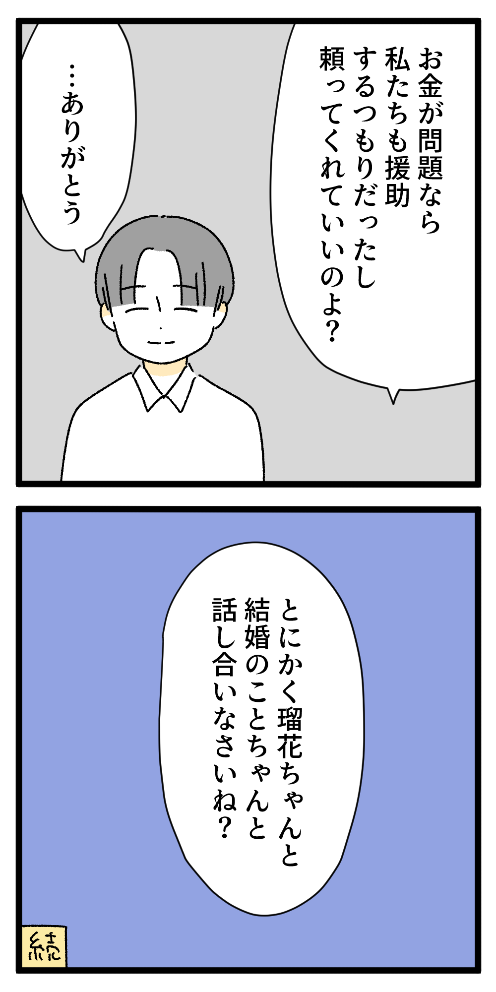 僕の彼女はインフルエンサー15 2024年02月07日 瑠花は結婚についてどう思ってるのかな。つづき 読者登録してね!!いち早く漫画が読めます◎▶︎その他の漫画はこちら 「僕の彼女はインフルエンサー」カテゴリの最新記事 < 前の記事次の記事 > コメント コメント一覧 (6) 1. ダラダラ 2024年02月07日 12:06 結婚前提の同棲だったんだお金貯めるなら1年くらいで区切らないとね。 彼女に今後どうするか相談しないと。 インフルエンサーになったばっかりでお互い結婚まだ考えられないなら、一旦同棲解消して普通のお付き合いをしながらお金貯まればいいし。 とりあえず期限を設けないでダラダラ同棲続けても良いことなさそう。 0 うみこ がしました 2. 彼女のご両親 2024年02月07日 12:21 同棲って籍を入れてない責任が問われない状態の男女が生活するってことだから、彼女の親からしたら妊娠とかいろいろ心配だよね。 仮にルカ本人がインフルエンサーなったばかりでまだ結婚考えられないというなら、そういうことも含めて彼女のご両親には報告した方が良いと思う。 じゃないと1年経っても何の音沙汰もないと心配だし不誠実な印象を持たれてしまうと思う。 0 うみこ がしました 3. ほぼ婚約中なんだ 2024年02月07日 14:52 ほぼ婚約中みたいな関係なんだ。 彼女の生活費負担割合や貯金額が分からないけど、2人で1LDKに住んでるのに貯金貯まらないなら結婚生活厳しくないかな?女性は出産したら何年か働けないので(男性が育休でもいいけど)片働きでも何年かやっていけないと厳しいと思う。インスタグラマーもすぐ収入なくなるかもだし。 0 うみこ がしました 4. アミル 2024年02月07日 16:59 配信始めるまではそこそこの収入だったかもしれないけど、配信始めてからは企業案件で50万とか言ってたじゃん? 今の方が収入あるんじゃないの? 0 うみこ がしました 5. お母さん 2024年02月07日 18:25 残念だけど、瑠花ちゃんは一年前の彼女ではありません。むしろ、息子さんを煙たく思ってますよー 0 うみこ がしました 6. インフルエンサー 2024年02月07日 20:34 残念ながら彼女は『結婚して幸せになる』という夢よりも『SNSで有名になりたい』という夢をとると思う。 0 うみこ がしました コメントフォーム 名前 コメント 記事の評価 リセット リセット 顔 星 情報を記憶 コメントを投稿する