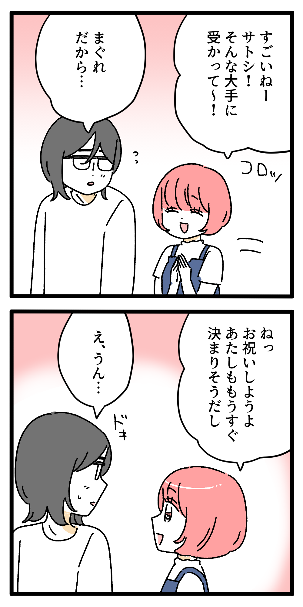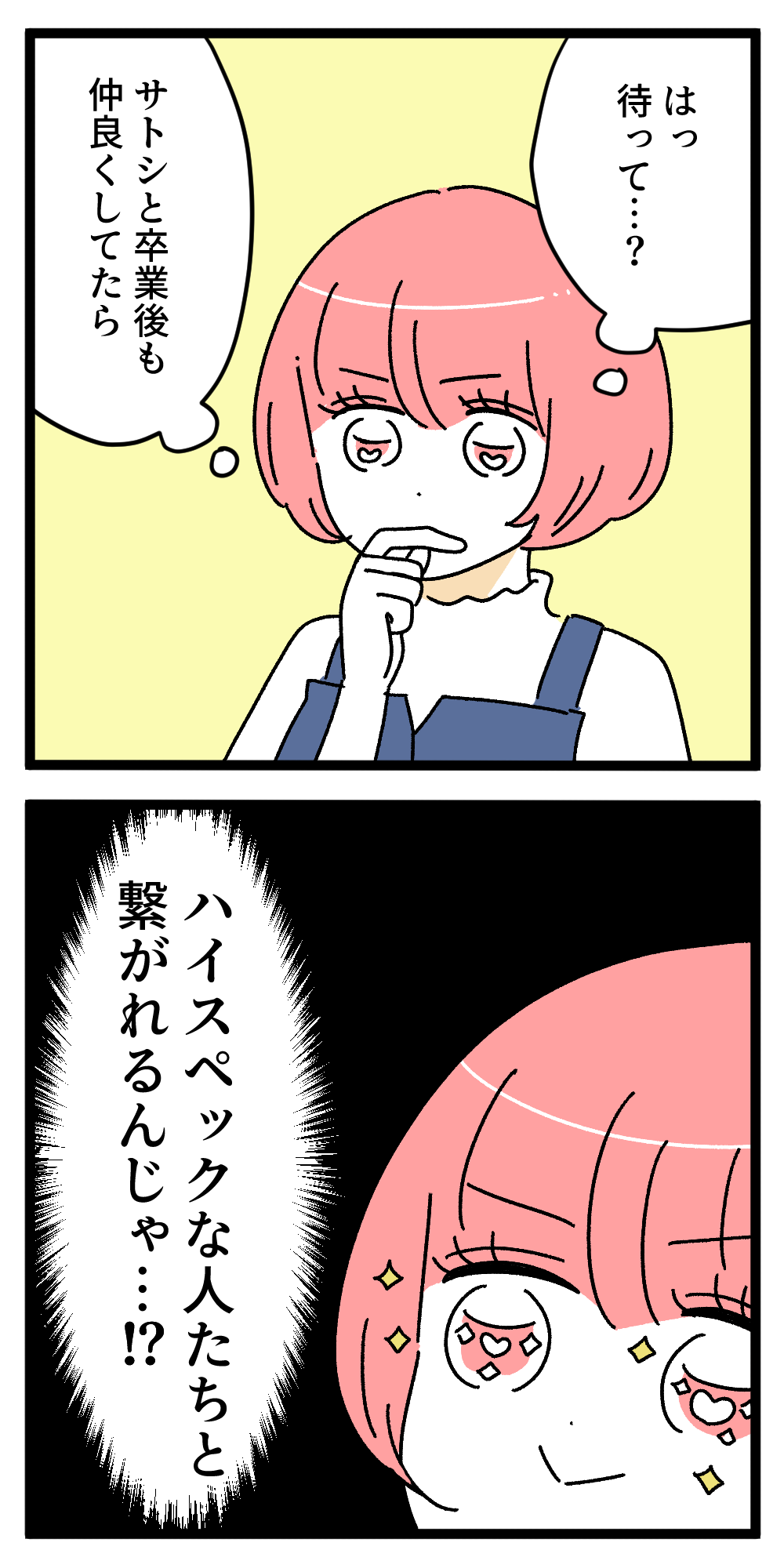 あたしがいちばんかわいい8 2025年01月14日 ぎっくり腰が一向に良くならないので、接骨院に行ってきました。まだ完全には治ってないけど、だいぶマシになりました~(泣)圧倒的に筋力不足ですねって言われた。それはそう。笑つづき 「あたしがいちばんかわいい」カテゴリの最新記事 < 前の記事次の記事 > コメント コメント一覧 (7) 1. ハイスペ繋がり 2025年01月14日 21:05 確かにズルくもあるけどサトシと繋がっておけばハイスペ系の男性とも繋がれるかもね。 サトシ上手く利用しても良いけど傷つけるようなことはしないで欲しいな。 0 うみこ がしました 2. 正直 2025年01月15日 00:17 この子嫌いじゃない笑 言ってる事は間違ってないし、幸せになれるかは別としてここまで振り切ってたら清々しい。 0 うみこ がしました 3. あ 2025年01月15日 01:15 いろんなハイスペ男と付き合うけど性格いいのが1番って最終的にはサトシを選ぶ気がする 0 うみこ がしました 4. うーん 2025年01月15日 09:27 こいつは自分は好きじゃないなぁ… 自分の事しか考えてないし。楽勝ムーブかましてた割に採用試験落ちてるし、会社の採用担当はそういうの見抜いたのかもね。まぁこんな奴普通雇わんわな…って考えてる事わかるから言えるんだけど。 0 うみこ がしました 5. まな 2025年01月15日 10:35 まわりまわってサトシえらびそうやな。 けどサトシは幸せにしてくれそう 0 うみこ がしました 6. ゆきんこ 2025年01月15日 12:29 サトシ、性格良さそうだし、メガネ、髪型など見た目を整えたらハイスペ&イケメンになる可能性を感じる。 0 うみこ がしました 7. なちゃん 2025年01月15日 14:45 多分サトシ、既に優しいし社会人になったら垢抜けてめちゃめちゃええ男になる気がする。 0 うみこ がしました コメントフォーム 名前 コメント 記事の評価 リセット リセット 顔 星 情報を記憶 コメントを投稿する