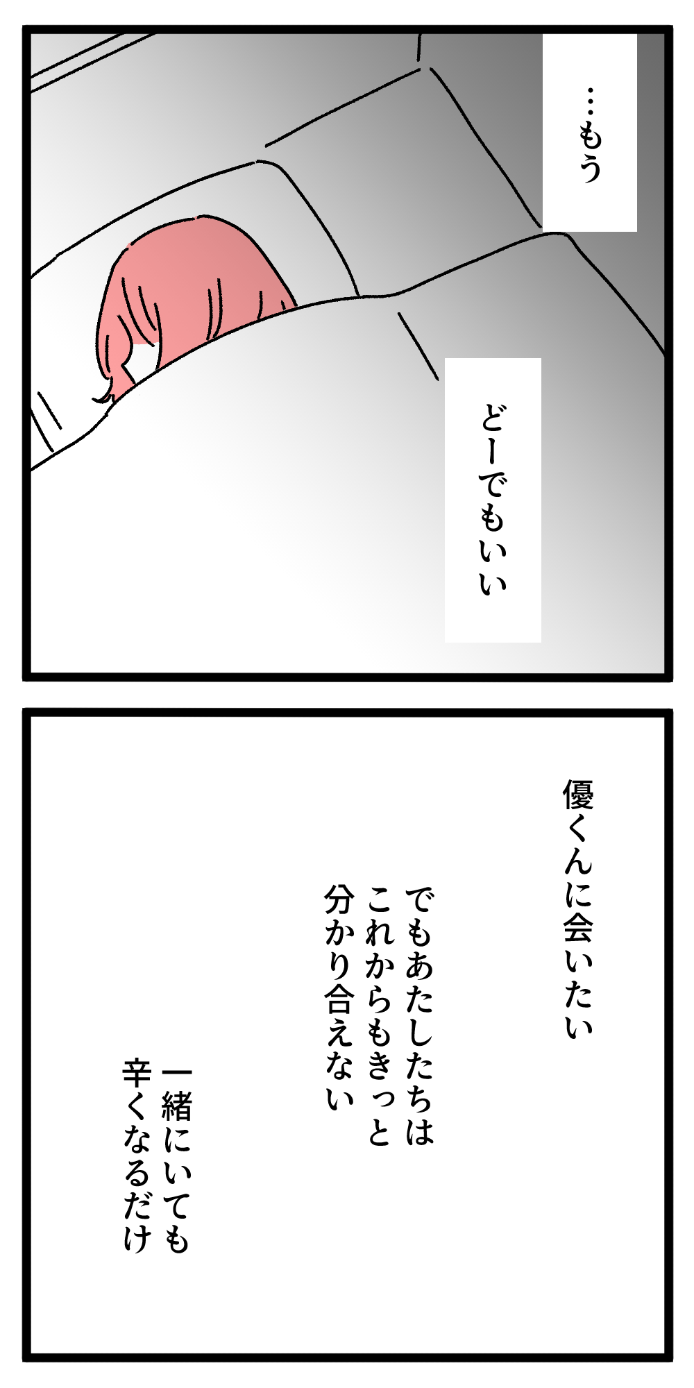 でも「初めてふられた」というところにハンナのプライドを感じる。優くんのことというより、いつもフる側だった自分がふられる側になりたくなかったって感じにも見える。