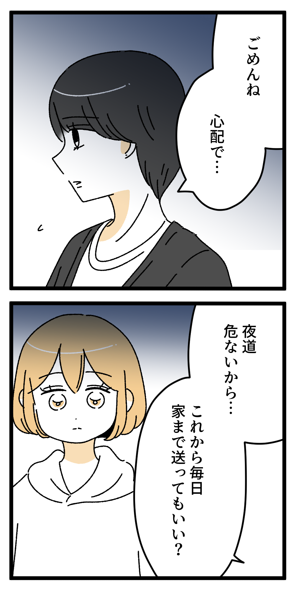 愛が重すぎる彼氏8 2025年11月09日 今日はクッキー缶を買いました。食欲の秋ですかね…。つづき 「愛が重すぎる彼氏」カテゴリの最新記事 < 前の記事次の記事 > コメント コメント一覧 (4) 1. お迎えに来てくれる 2025年11月09日 20:56 彼氏いいなー 私も当時嬉しかったもんなー 0 うみこ がしました 2. ちょっと重いかなぁ。 2025年11月09日 21:10 優しい彼氏かも知れないけど、毎日家まで送ってくれるって…?え?本当に良いの? いやいや、ちょっと…。心配なのは分かるけど 風莉ちゃんはどんな気持ちなんだろうか。 0 うみこ がしました 3. あ 2025年11月10日 01:18 この時点では別にわたしは重いって思わないかな 店にずっといるとか数時間前から待ってるとかじゃないし 23時ってじゅうぶん暗いもんなー 0 うみこ がしました 4. オバチャンの経験上、 2025年11月10日 12:06 バイトや職場まで毎回迎えに来てくれるメンズはだいたい危ないです😢 関係が良好な時はいいけどね…😢 0 うみこ がしました コメントフォーム 名前 コメント 記事の評価 リセット リセット 顔 星 情報を記憶 コメントを投稿する