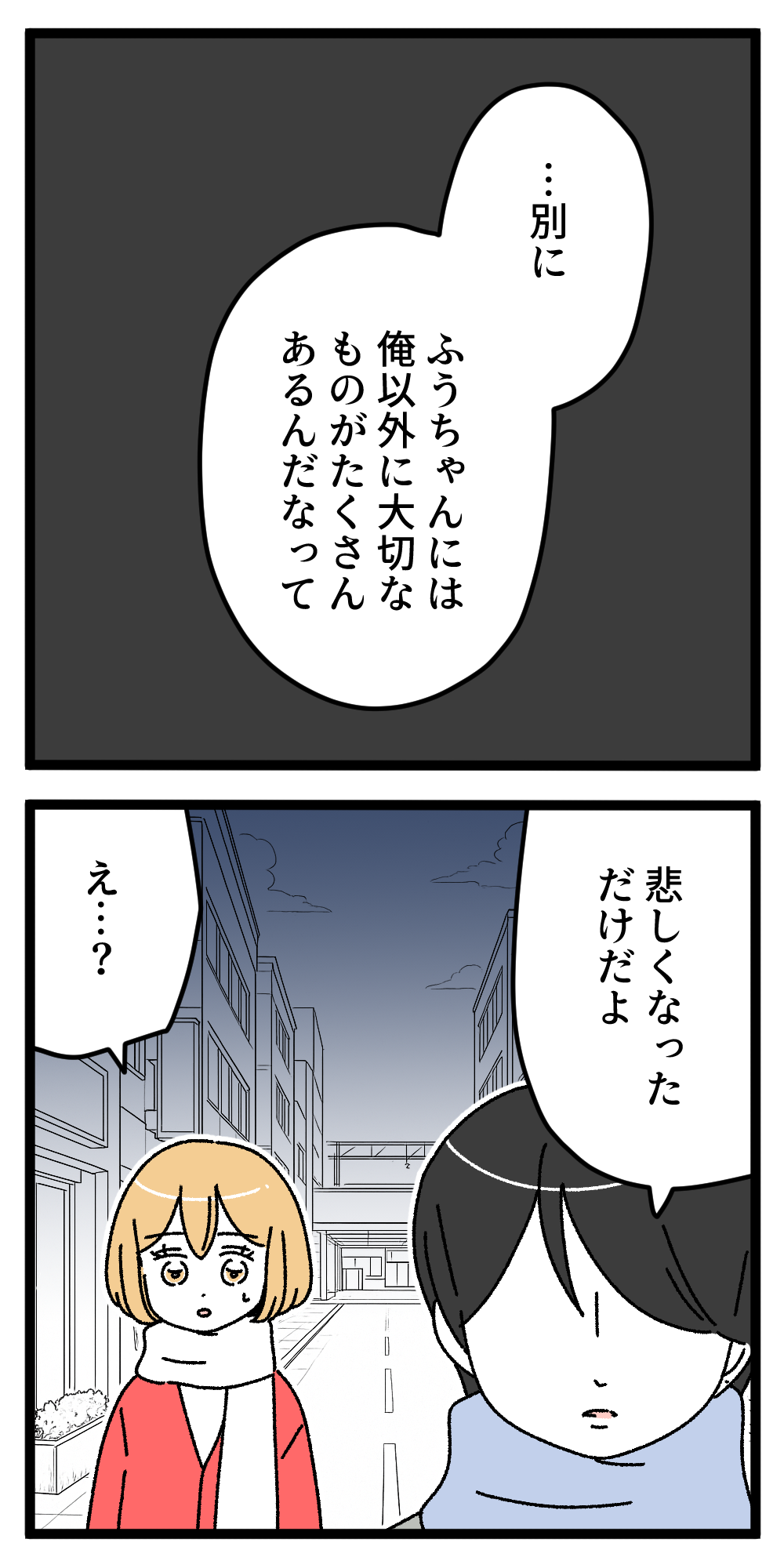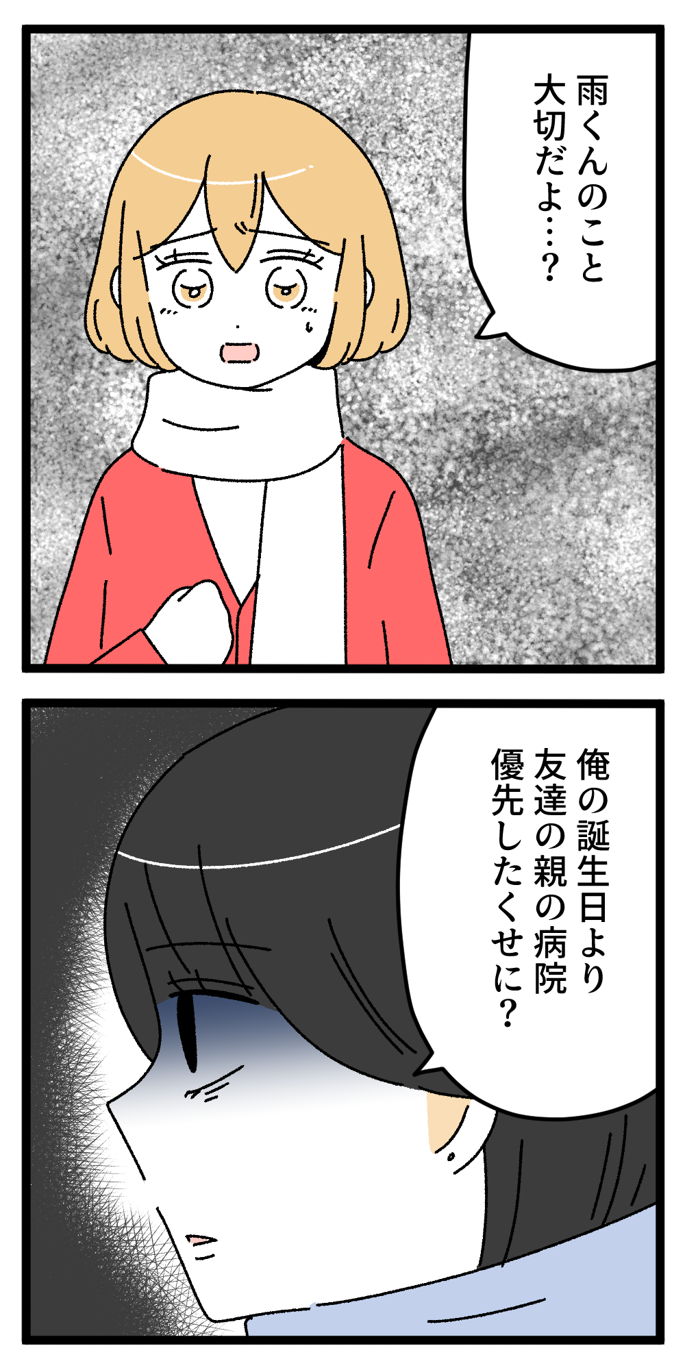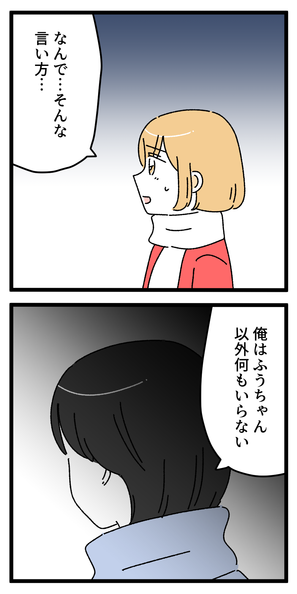 愛が重すぎる彼氏66 2026年01月09日 残り5話です!Kindleで最終回まで一気読みできますのでぜひ、無料です。その後の2人のおまけ漫画も載せてます。つづき 「愛が重すぎる彼氏」カテゴリの最新記事 < 前の記事次の記事 > コメント コメント一覧 (8) 1. 心の向き合い方 2026年01月09日 21:13 ただのラブコメかと思いきや 私の旦那も情緒不安定なときに私が友達と楽しく遊ぶ姿を見て同じようになります。 そういう人はだいたい自分の感情をコントロールできないんですよね。 解決策知りたい 0 うみこ がしました 2. うんうん 2026年01月09日 22:00 これは悲しくていいと思う 大切なものがたくさんありすぎる人は全部大事にできない側面もあるよね 0 うみこ がしました 3. あ〜これは… 2026年01月09日 22:11 だんだんと雨君の心の闇が見えて来たね…! 風莉ちゃんがその心の闇とどの様に付き合っていくのか…?どんなふうに解決するのか。 はたまた諦めて終わりにするのか。 今のところお互いに相手を理解出来ないと思う。 0 うみこ がしました 4. 悲しいな 2026年01月09日 22:13 雨くん ふうちゃんのこと本当に好き? あなたが好きなはずのふうちゃん... あなたのことが好きなふうちゃんは 今、すごく傷ついてるよ? 0 うみこ がしました 5. てん 2026年01月09日 23:24 男のメンヘラだね。 鬱陶しいわ! 0 うみこ がしました 6. くりきんとん 2026年01月10日 01:17 俺が1番大切なのは、ふうちゃんじゃなくて 俺 0 うみこ がしました 7. みゃー 2026年01月10日 06:13 元カノとオソロのピアス付けてる奴がグチグチ言ってんじゃねぇー!! 0 うみこ がしました 8. えだ 2026年01月11日 19:31 雨くんにはピアスがあるじゃないか! 0 うみこ がしました コメントフォーム 名前 コメント 記事の評価 リセット リセット 顔 星 情報を記憶 コメントを投稿する