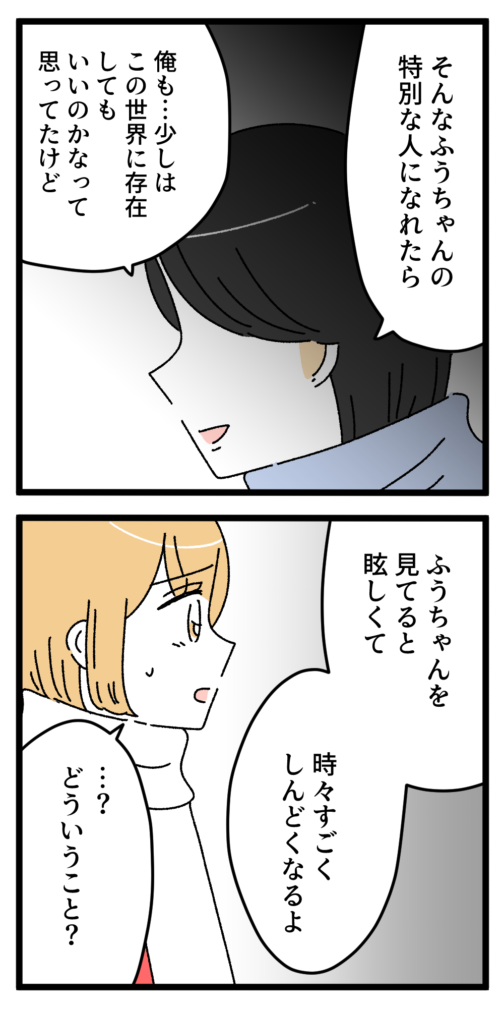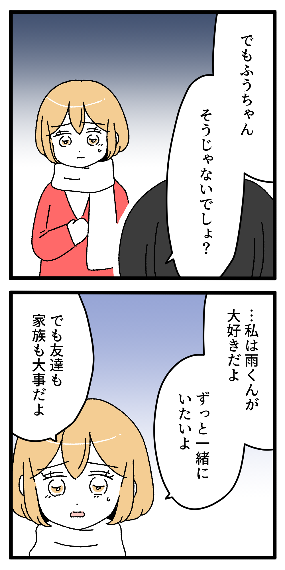 愛が重すぎる彼氏67 2026年01月10日 Kindle限定で最終回後のふたりのその後が読めます。無料なのでぜひ。つづき 「愛が重すぎる彼氏」カテゴリの最新記事 < 前の記事次の記事 > コメント コメント一覧 (5) 1. 悲劇のヒロイン男子 2026年01月11日 00:53 たとえ誰からも望まれなくても、今、こうして大学生やっているでしょ?イケメンに生まれたし、自分の人生を生きているじゃん。もっと酷い状況の人もたくさんいるよ。自分に無い物をたくさん持っている風莉ちゃんに巡り会えた事を誇りに思えないの? 0 うみこ がしました 2. だからといって 2026年01月11日 08:31 GPS 監視や交遊関係の制限の理由にはならない 本人の精神衛生を保つためにも、彼女だけに依存するとなくなったときバランスを崩しやすいし、ペットお迎えしたり趣味に没頭して依存先を量産した方がいい 0 うみこ がしました 3. うん、 2026年01月11日 12:47 そのピアスがなかったらねぇ〜 少しは同情するんだけどね。 そして、今その太陽を曇らせてるのは君だよ! 0 うみこ がしました 4. みー 2026年01月11日 18:32 あーそーなんだー かわいそうだねー それでー? しか言葉がでないよ。 自分の生きてきた環境が犯罪にはしる事や 人を傷つけていい理由にはならない。 0 うみこ がしました 5. 名無し 2026年01月11日 21:17 闇深いなぁ 元カノにもこんな感じだったのなら、元カノも大変だったろうなって思った 0 うみこ がしました コメントフォーム 名前 コメント 記事の評価 リセット リセット 顔 星 情報を記憶 コメントを投稿する